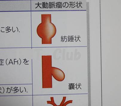 大動脈瘤の形態的に紡錘状と嚢状に分けられ、多くの例では紡錘状を呈する。嚢状では比較的小さな大動脈瘤でも急速に拡大し破裂の危険性が高いため注意を要する。