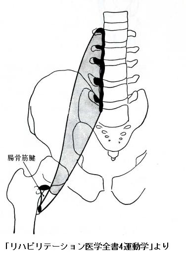 作用:股関節の屈曲、両側同時収縮にて腰椎前彎、一側のみの収縮で腰椎の同側への側屈と対側への回旋、仙骨(S1)に対する下位腰椎(L5)の屈筋、腰椎の垂直方向の安定装置